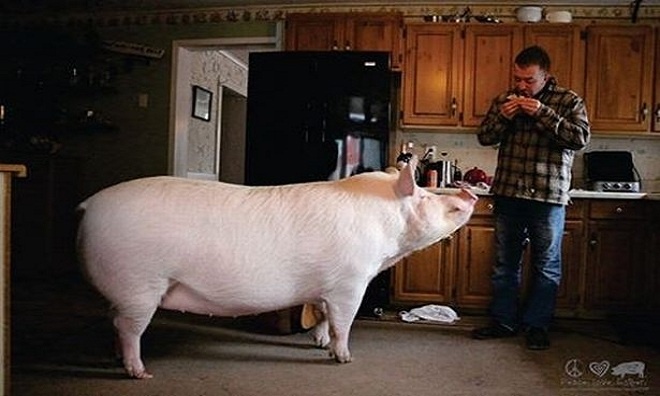 Một cặp vợ chồng ở Ontario Canada đã nuôi nấng con loặn nặng 300kg như thú cưng trong nhà. Con heo này năm nay 4 tuổi và to hơn cả một con gấu Bắc Cực trưởng thành. Chú heo sống cũng rất hòa thuận với con người cũng như con vật khác trong nhà.