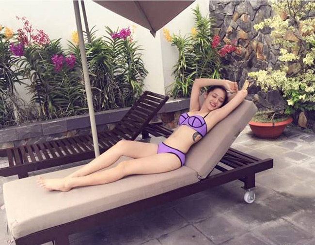 Trước đó, rất hiếm hoi Bảo Anh mặc bikini khoe những hình xăm gợi cảm của mình như thế này.