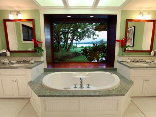 Bồn tắm kết hợp xông hơi có view nhìn ra bãi biển Kailua.