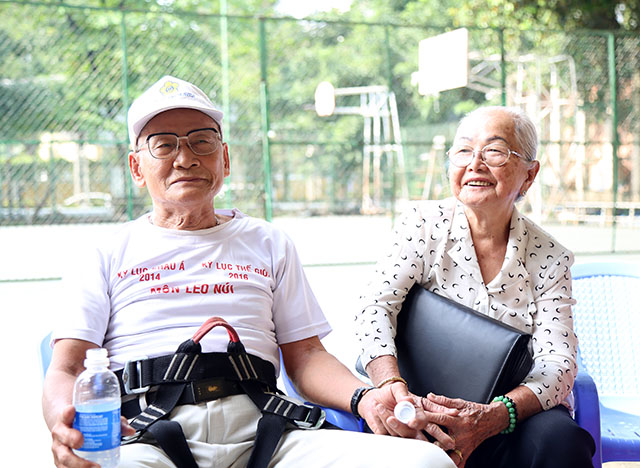 Sau những giây phút trò chuyện ngắn ngủi, cụ Ráng đã tự tay cột dây giầy rồi đứng lên để mang những công cụ bảo hộ, chuẩn bị leo vách núi nhân tạo cao 16m đang chờ phía trước. Tất nhiên, với thành tích 4 lần chinh phục đỉnh Fansipan hay còn được mệnh danh là “nóc nhà” Đông Dương cùng với việc chinh phục gần như tất cả những ngọn núi lớn, nhỏ ở Nam Bộ, thì vách núi nhân tạo 16m khó lòng làm khó được cụ.