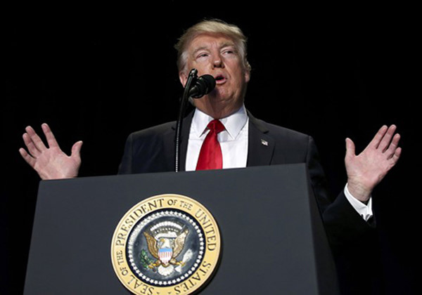 Tổng thống Trump phát biểu trong sự kiện hôm nay ở Washington. Ảnh:Reuters