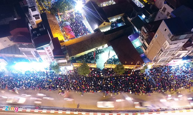 18h, bên trong sân chùa gần như đã chật kín khách. Nhiều người phải vác ghế lên đầu, len lỏi đi vào. 18h30, lượng người bắt đầu đông hơn. Họ đổ về gần kín một chiều lòng đường phố Tây Sơn đoạn trước cửa chùa.