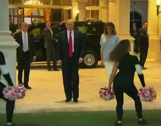 Cả hai được một đội cổ vũ và dàn nhạc chào mừng nồng nhiệt khi xuất hiện tại sân golf của Trump ở West Palm Beach, bang Florida sáng qua để hòa chung không khí sôi động trên khắp cả nước trong ngày Chủ nhật Siêu cúp, theo Reuters.