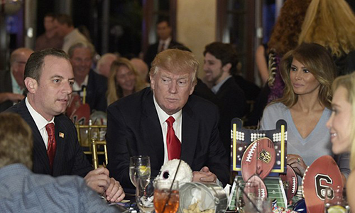 Vợ chồng ông Trump dự tiệc cùng chánh văn phòng Nhà Trắng Reince Priebus. Ảnh: AP