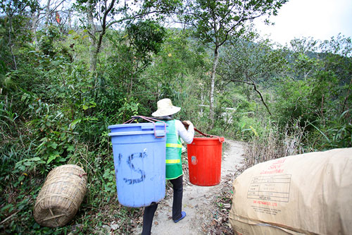 Nhọc nhằn là vậy nhưng những bước chân thoăn thoắt vẫn ngày ngày cần mẫn vượt qua từng bậc đá hiểm, vượt qua hàng ngàn bậc thang con đường lên xuống núi, gồng gánh những thùng rác nặng hơn cả trọng lượng cơ thể mình để giữ gìn môi trường cảnh quan được sạch đẹp.