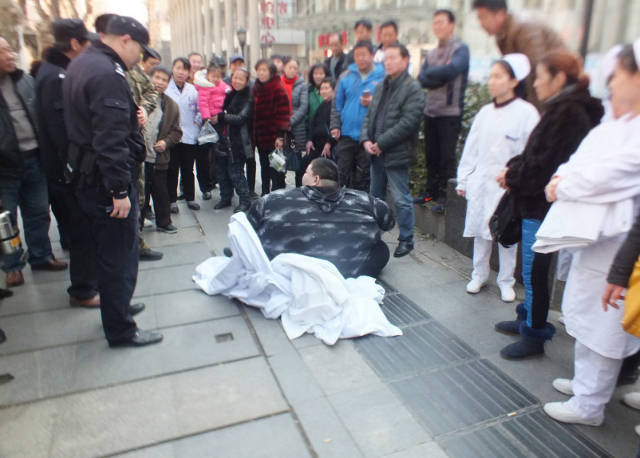 Một chàng trai béo 220kg người Hồ Bắc đã bị ngã. Hàng chục người vây lại giúp đỡ nhưng 2 tiếng mới cứu được người bị nạn. Mẹ của chàng béo cũng đã phải gọi điện cho lực lượng cứu hộ trong khu vực.