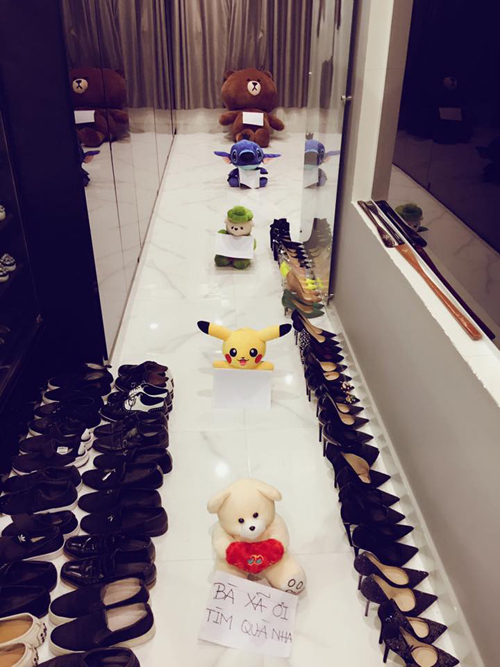 Trấn Thành bắt vợ đọc lời nhắn trên từng con thú bông.