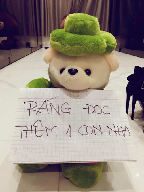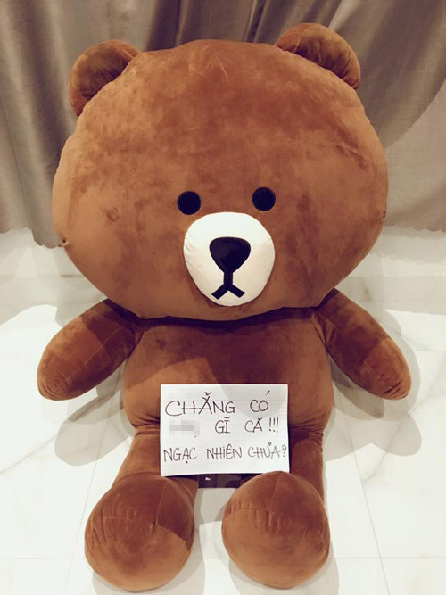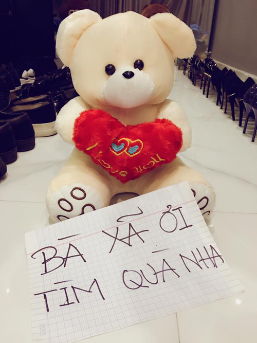 Cách đây ít giờ, Hari Won đã chia sẻ trên trang cá nhân về hành động lãng mạn của chồng. Cô kể: "Valentine muộn, Hari cũng có quà. Chồng tạo bất ngờ. Đi diễn xa về cái rất nhiều gấu bông cầm giấy meno chào đón mình. Và... Nhận xong khóc quá trời, cảm động ghê. Cảm ơn chồng nhé".