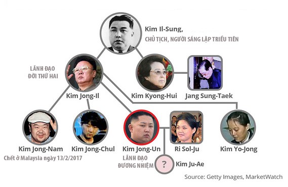Gia phả họ Kim, dòng tộc 3 đời lãnh đạo Triều Tiên. Đồ họa: Getty Images/Market Watch.