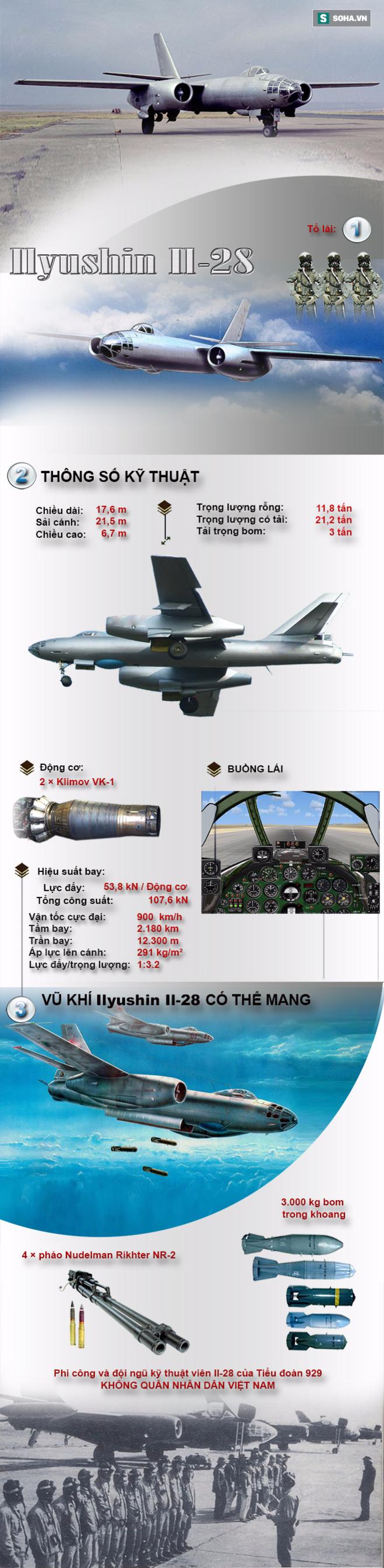 VBF-Máy bay ném bom luôn được coi là quân bài chiến lược đối với quân đội của bất kì quốc gia nào. Tuy nhiên trong lịch sử chiến tranh VN thì chỉ có duy nhất 1 loại máy bay ném bom nằm trong biên chế của quân đội VN. Đây là loại máy bay do Nga SX và có không nhiều thời gian phục vụ trong quân đội VN.Lịch sử Không quân Nhân dân Việt Nam ghi nhận: Trong ba ngày cuối tháng 6/1965, 8 chiếc máy bay ném bom tầm trung Il-28 do phi công nước bạn điều khiển lần lượt hạ cánh xuống sân bay Nội Bài sau chuyến bay dài từ sân bay quân sự của Liên Xô và quá cảnh trên đất Trung Quốc.