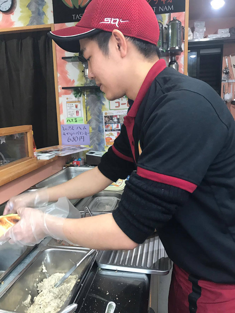 Tiệm bánh mỳ Việt Nam của hai anh em Duy và Tâm trên con phố Waseda Dori, Tokyo, Nhật Bản.