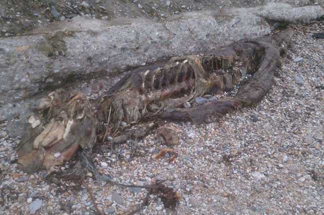 Sinh vật bí ẩn dạt vào bờ biển mà không ai rõ là của loài động vật nào.