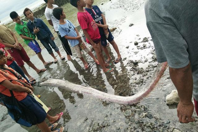 Có thể bạn không tin nhưng các nhà khoa học tại Mỹ cũng đã có lý giải đầy thuyết phục về giả thiết cho rằng sự xuất hiện của con cá này là điềm báo của động đất sóng thần. Cụ thể, những người dân tại một ngôi làng ở Carmen, Philippines đã bắt được một con cá lạ có hình thù dị dạng.