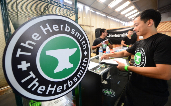 Người trồng và người bán cần sa dành cho mục tiêu y khoa đang dự hội chợ cần sa được tổ chức lần đầu tiên tại Los Angeles. (Frederic J. Brown/ Getty Images)
