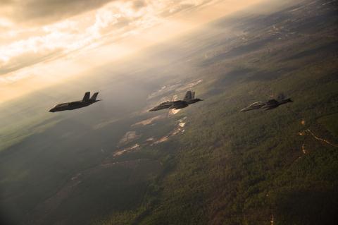 Tiêm kích F-35B huấn luyện cùng F/A-18.