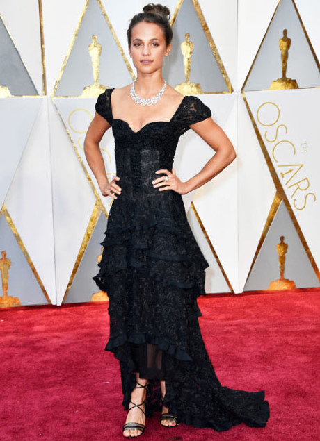 Chiếc đầm xếp ren nhiều tầng của ngôi sao The Danish Girl là Alicia Vikander khiến cô trở nên luộm thuộm.