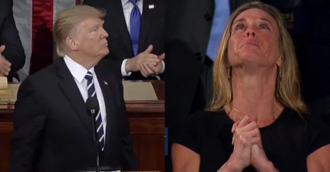 Khi nước mắt lăn dài trên khuôn mặt cô, mọi người trong phòng Quốc hội Mỹ đã đứng dậy và vỗ tay dài đến hai phút. Đây dường như là khoảnh khắc xúc động nhất trong bài phát biểu của Tổng thống Trump.