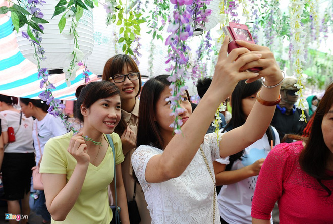 Ngày 14/5/2016, lễ hội hoa tử đằng Fuji Matsuri diễn ra tại một trung tâm thương mại trên địa bàn quận Long Biên, Hà Nội. Được quảng cáo với những hình ảnh lung linh cùng ý nghĩa tượng trưng cho tình yêu vĩnh cửu, con đường hoa tử đằng thực tế chỉ dài 20 m và tràn ngập hoa giả. Ảnh: Việt Hùng.