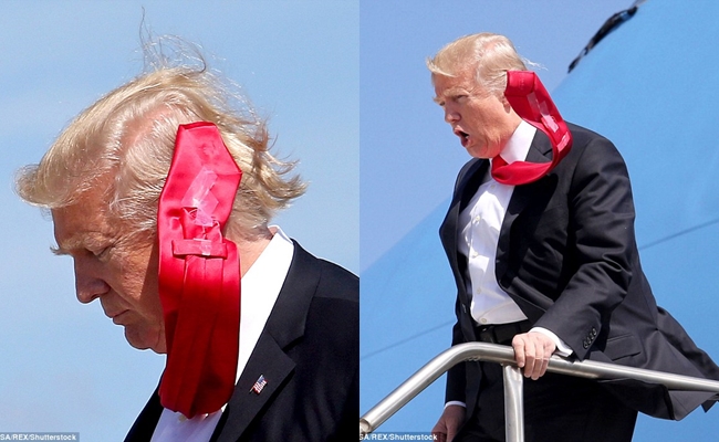 Ngay sau khi chiến thắng tranh cử Tổng thống chỉ vài tuần, ông Donald Trump cũng đã có màn tung bay cà vạt khi bước xuống máy bay tại bang Indiana vào hôm 1/12 hay gần đây nhất là hôm 26/1, chiếc cà vạt đỏ của ông Trump cũng bay phấp phới khi ông đang bước xuống chiếc Air Force One tại căn cứ không lực Andrews, Maryland.
