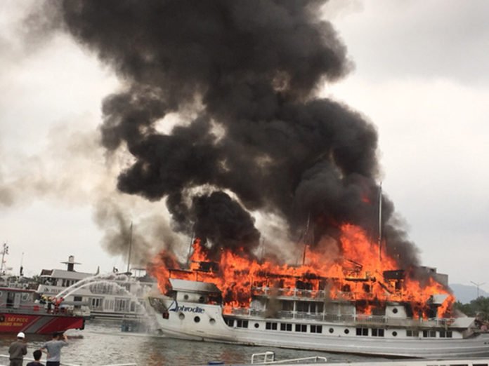 QUẢNG NINH (NV) – Tàu du lịch đang neo đậu ở cảng Tuần Châu thì bất ngờ phát hỏa. Ðây là vụ cháy tàu du lịch thứ 3 tại trên vịnh Hạ Long từ đầu năm 2017 tới nay, mặc cho ông chủ tịch tỉnh “chỉ đạo họp bàn chống cháy tàu.”