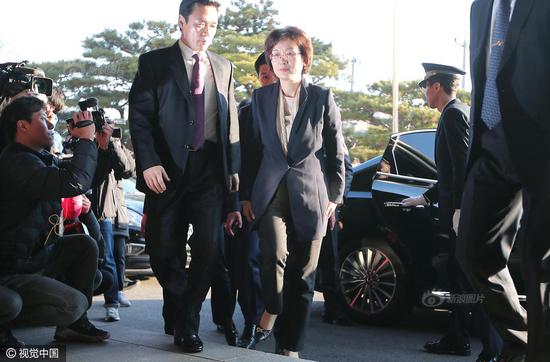 Bà Lee Jung-mi tới tòa trước khi Tòa án Hiến pháp ra phán quyết về số phận chính trị của Tổng thống Park Geun-hye. (Ảnh: Sina)
