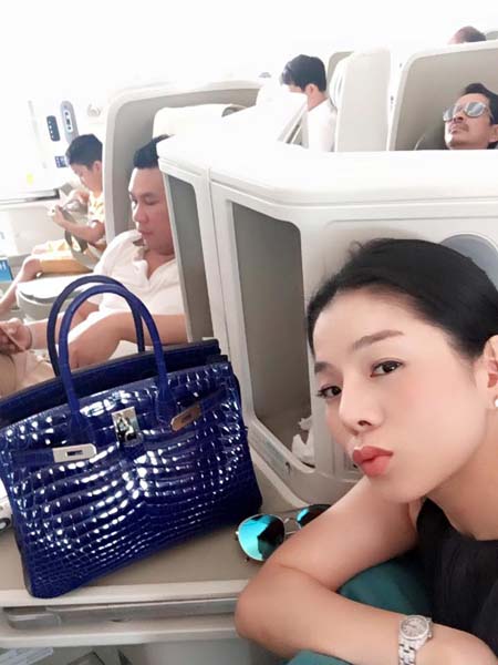Mới đây, trên trang cá nhân của mình, Lệ Quyên đăng tải những hình ảnh trên các chuyến bay đi, về giữa Sài Gòn – Hà Nội. Trong những bức ảnh đó, bên cạnh cô luôn là một chiếc túi hàng hiệu Hermes.