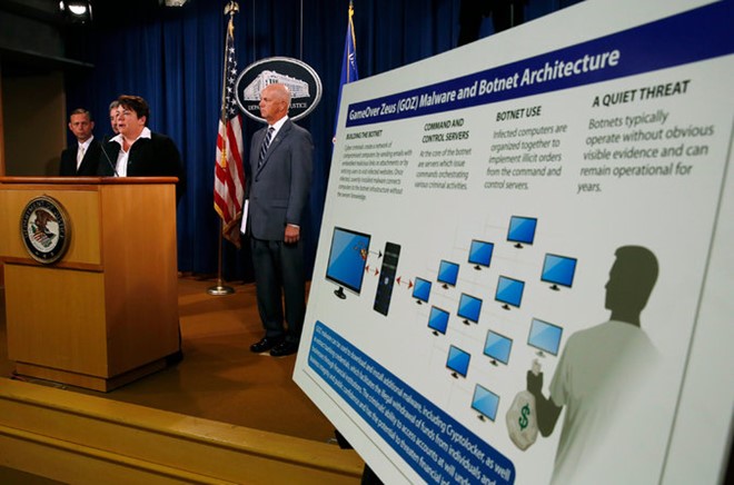 Leslie R. Caldwell - cựu Trợ lý Bộ trưởng thuộc Phòng Tội phạm của Bộ Tư pháp tại buổi họp báo chiến dịch xóa sổ mã độc GameOver ZeuS của Bogachev vào năm 2014. Ảnh: Reuters.