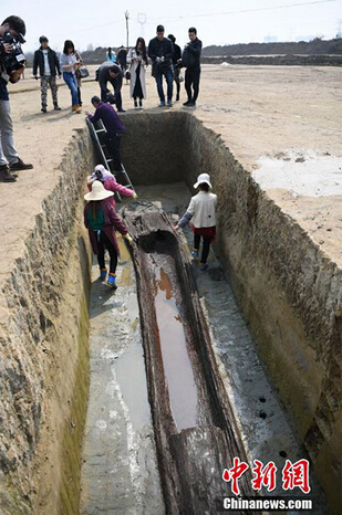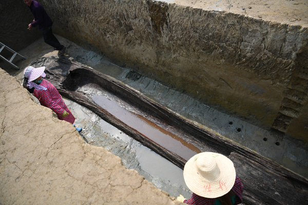 Nằm giữa khu vực là quan tài lớn nhất, được chôn dưới mặt đất 2 mét. Quan tài được đục từ thân cây và bị bùn che lấp, China Daily viết.