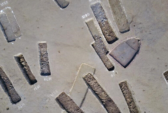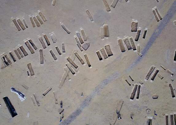 Ảnh trên cao cho thấy hàng trăm quan tài cổ được chôn dưới đất