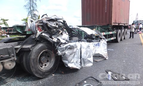 Khi xe khách vừa lên dốc cầu Rạch Miễu (thuộc địa bàn P.6, TP. Mỹ Tho, tỉnh Tiền Giang) thì bất ngờ va chạm với xe container BS: 51C - 627.79 kéo theo rơmoóc BS: 51R - 070.59 đang xuống dốc cầu theo chiều ngược lại.