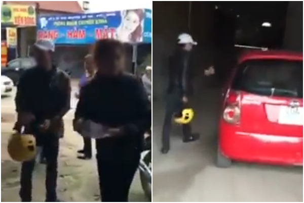 Sau một hồi quát mắng, người đàn ông đi tới chiếc xe màu đỏ đang đỗ gần đó và bắt đàn ông được cho là nhân tình của vợ phải đi ra. Tuy nhiên, người này nhất quyết ngồi im trong xe khiến anh chồng càng tức giận.