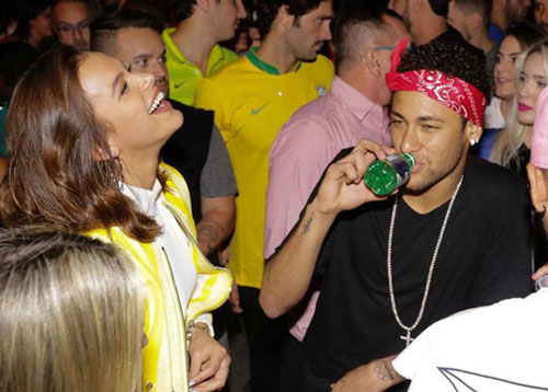 Neymar “quẩy” tưng bừng bên bạn gái. Ngay sau khi giúp ĐT Brazil giành chiến thắng 3-0 trước Paraguay, tiền đạo Neymar đã đưa cô bạn gái Bruna Marquezine tới tham dự một buổi biểu diễn ca nhạc khá lớn tại Sao Paulo. Tại đây, ngôi sao đang khoác áo Barcelona đã tỏ ra cực kỳ vui vẻ khi không chỉ nhảy nhót, mà còn ăn uống khá cuồng nhiệt bên bạn gái xinh đẹp.