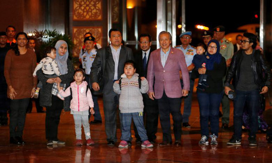 Bộ trưởng Ngoại giao Malaysia Anifah Aman (thứ 3 từ phải sang) đón 9 công dân về nước. Ảnh: REUTERS
