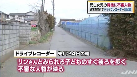 Cảnh sát Nhật đang phân tích hình ảnh nhân vật khả nghi đi sau lưng một bé gái được cho là bé Nhật Linh do camera hành trình của một ô tô ghi lại được khi chạy trên đoạn đường bé hay đi bộ đến trường, theo hãng TBS News ngày 1-4 .