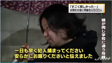 Một phụ huynh có con gái học cùng trường với bé Linh mong muốn cảnh sát mau bắt được kẻ thủ ác càng sớm càng tốt. Ảnh: Japanese News Network