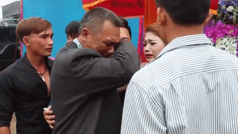 Ông bố ôm con gái, không ngăn được dòng nước mắt