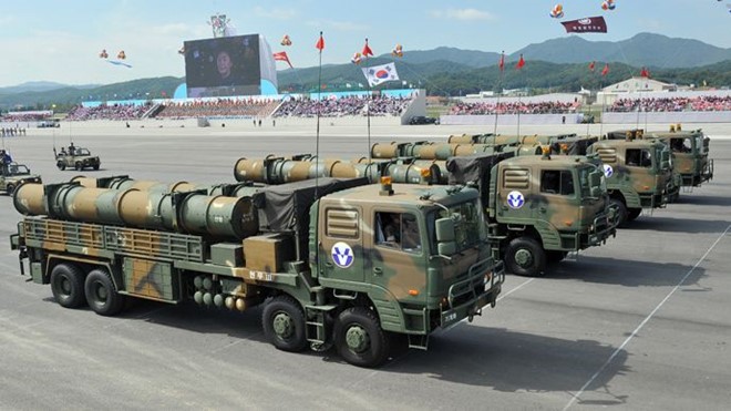 Tên lửa đạn đạo Hyunmoo của Hàn Quốc trong một cuộc diễu binh. Ảnh: Military-informant