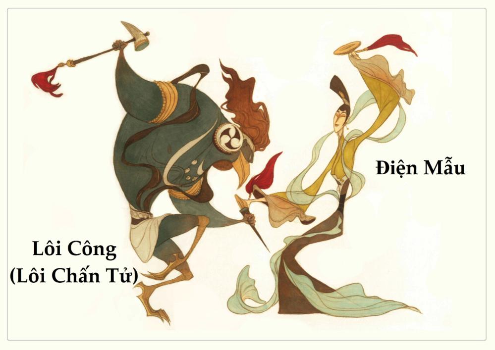 Trên ảnh là chân dung của đôi vợ chồng thần Lôi Công và Điện Mẫu.