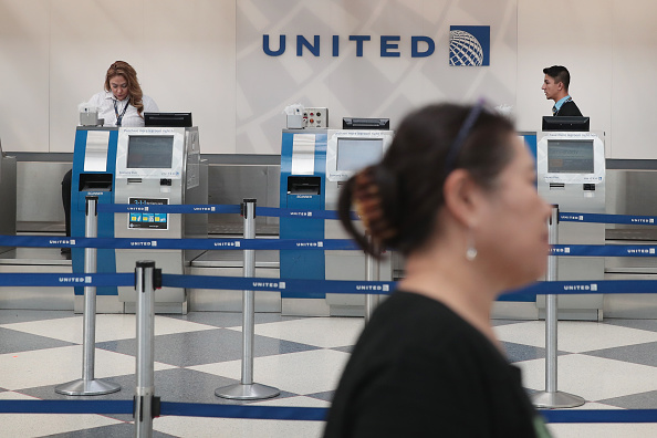Quày bán vé của hãng United Airlines tại phi trường Chicago ngày thứ Tư vừa qua. (Getty Images)