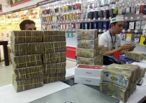 Theo đại diện một cửa hàng trên quốc lộ 22, Củ Chi, TP.HCM, chiều 14/4 có vị khách ăn mặc đơn giản hỏi mua 2 chiếc iPhone 7 màu đỏ bản 128 GB. Sau khi mua hàng, người này này mang ra khoảng 50 triệu đồng tiền lẻ để trả. "Cửa hàng phải huy động 7 nhân viên, đếm tiền liên tục trong 3 tiếng đồng hồ mới xong".