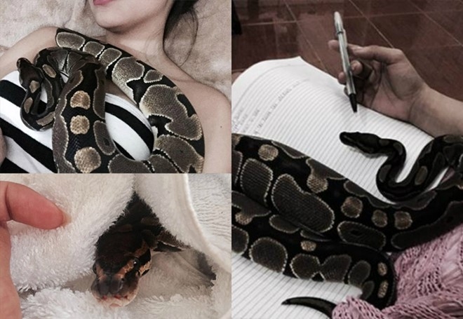 Nhiều chàng trai hài hước chia sẻ họ không khỏi ghen tỵ với chú rắn vì được cô chủ xinh đẹp hết mực cưng chiều.