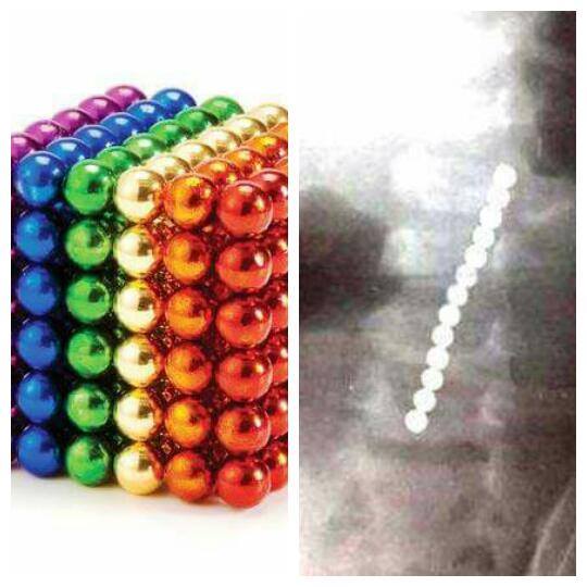 Một cậu bé hơn 1 tuổi cấp cứu vào bệnh viện sau khi bị ốm với triệu chứng nôn ói. Không ngờ khi đến viện khám các bác sĩ thông báo với gia đình trong dạ dày bé có... 13 viên bi sắt nam châm.