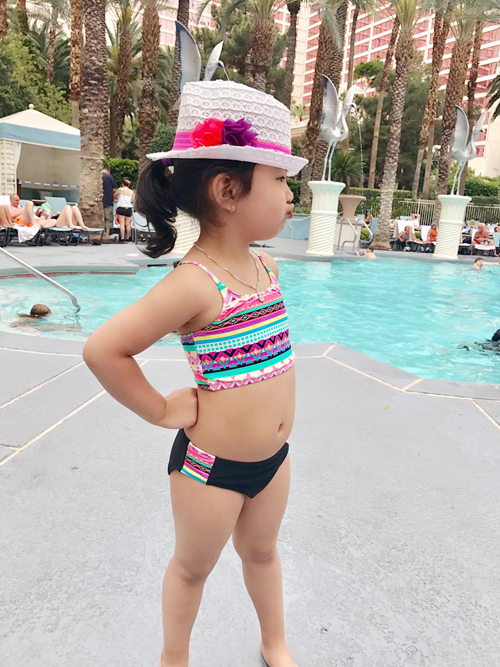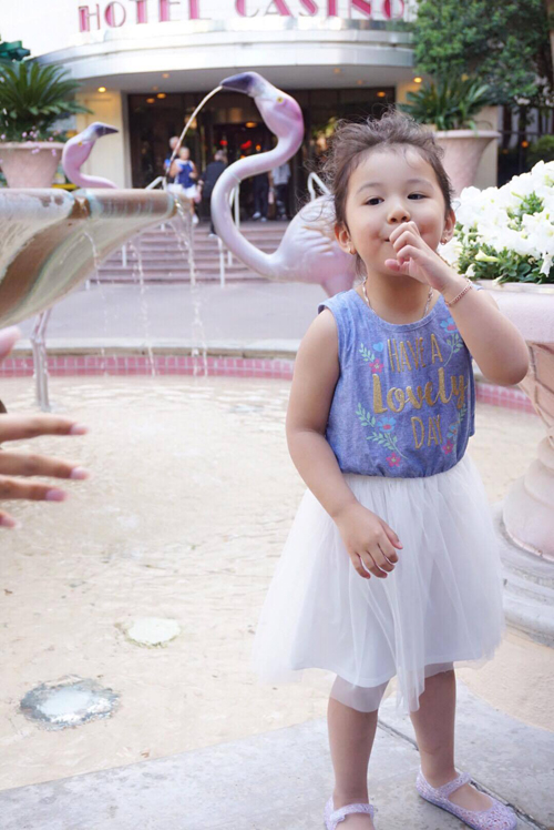 Trong kỳ nghỉ ở Las Vegas, 3 mẹ con Jennifer Phạm thỏa thích bơi lội. Người đẹp tiết lộ, ngày nào Bảo Nam và bé Na cũng đòi mẹ cho đi bơi. Cả hai còn thích xem show ca nhạc và xiếc.