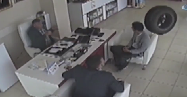 Theo tờ Daily Sabah, vụ việc xảy ra vào hôm thứ Sáu vừa qua, tại tỉnh Adana, miền nam Thổ Nhĩ Kỳ. Một camera giám sát cửa hàng dược phẩm đã ghi lại toàn bộ vụ việc khi chiếc bánh xe bị rớt khỏi một chiếc xe ô tô, bật nảy lên vỉa hè, đâm vào một cái cây trước khi lao thẳng vào cửa hàng dược phẩm trúng 2 người đàn ông.