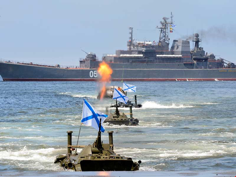 Xe thiết giáp của lực lượng lính thủy đánh bộ thuộc hạm đội Thái Bình Dương Nga tập trận tại vùng Viễn Đông năm 2012. Ảnh: RIA