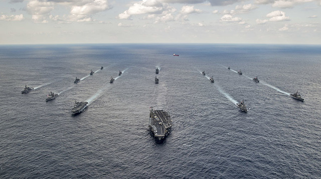 Nhóm tàu chiến của Hải quân Mỹ và Lực lượng phòng vệ bờ biển Nhật Bản. (Ảnh: Reuters)