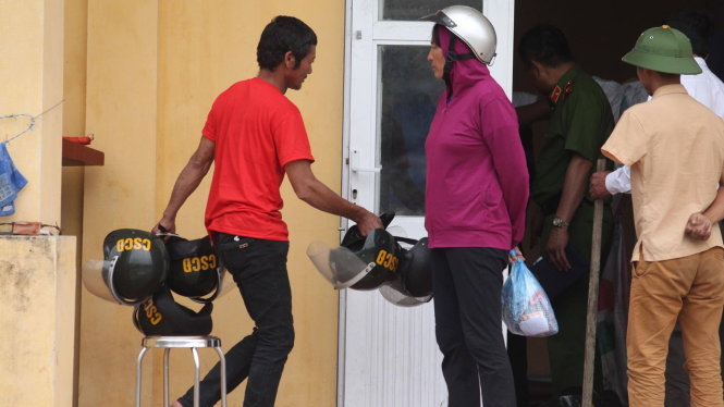 Người dân đem tư trang trả lại các chiến sỹ cảnh sát cơ động. (Ảnh: Nguyễn Khánh/Tuổi trẻ)
