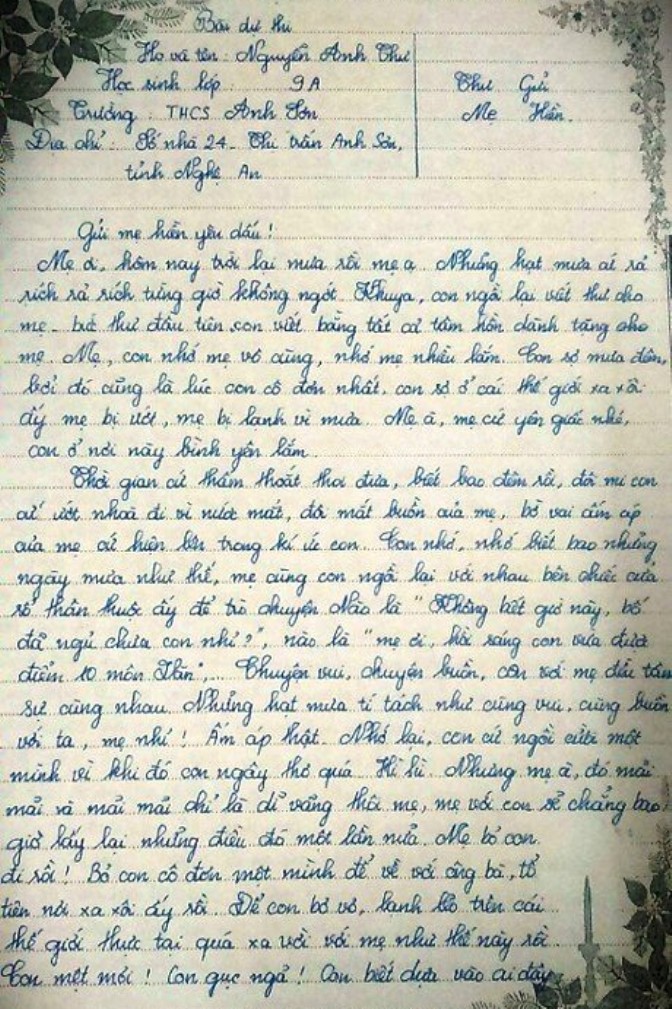 Old  Default Nhiều người không cầm nổi nước mắt khi đọc thư gửi mẹ đã khuất của học sinh lớp 9