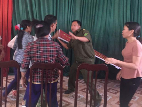 Vụ việc xảy ra tại trụ sở UBND xã Phúc Sơn (huyện Tân Yên, tỉnh Bắc Giang). Phó chánh án tòa án nhân dân cấp cao tại Hà Nội đang xin lỗi ông Hàn Đức Long. Ông Long đã phải ngồi tù oan nhiều năm.