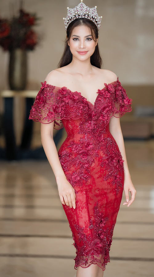 Phạm Hương gây sốt với đầm đỏ buông lơi như sắp rơi